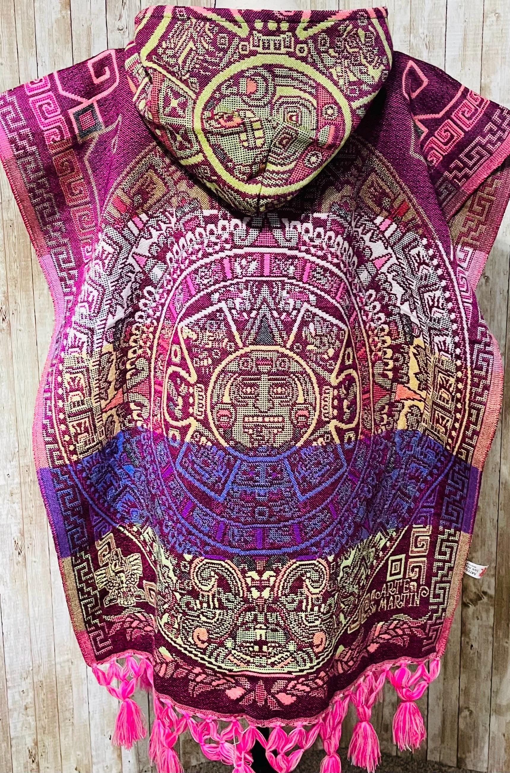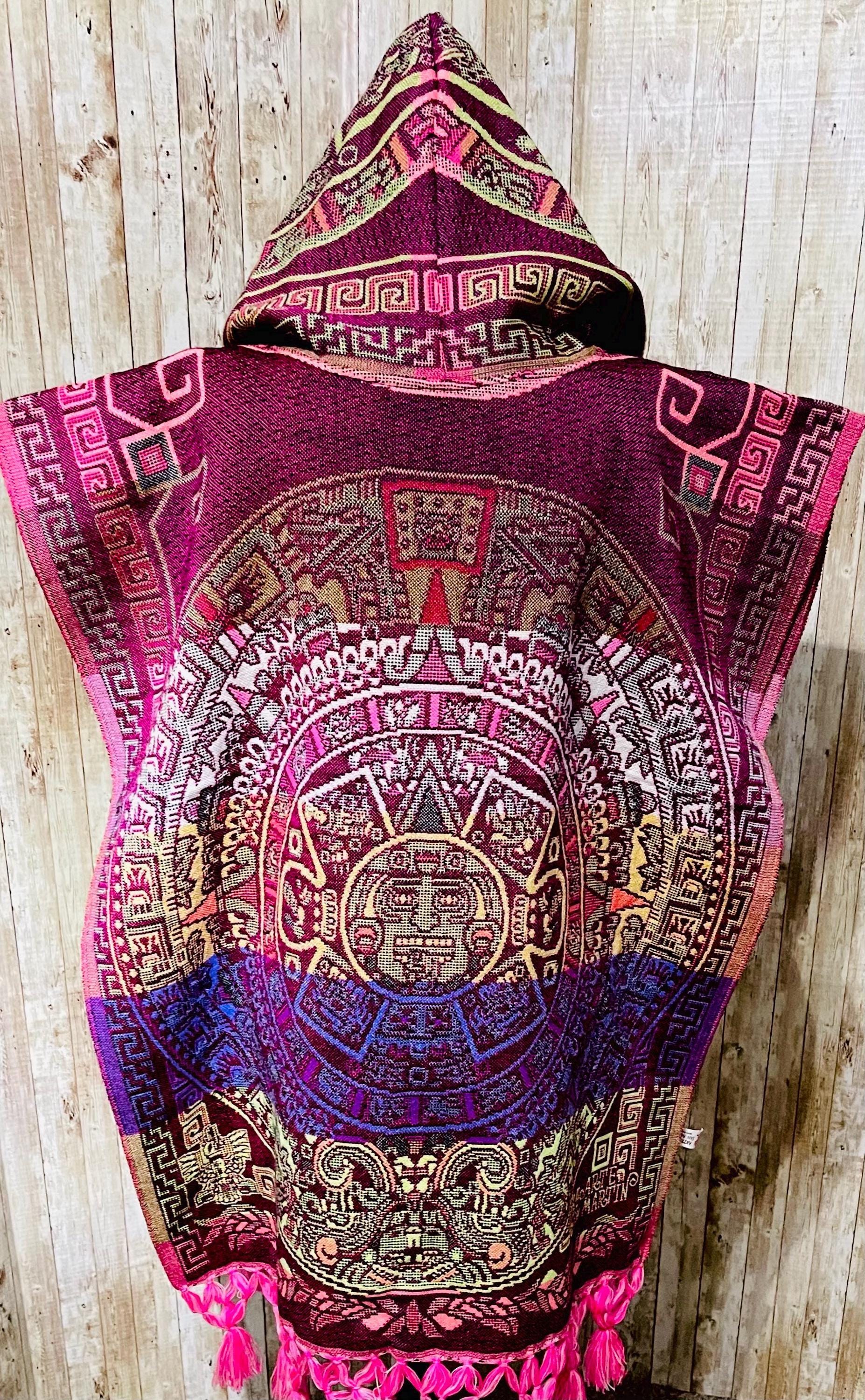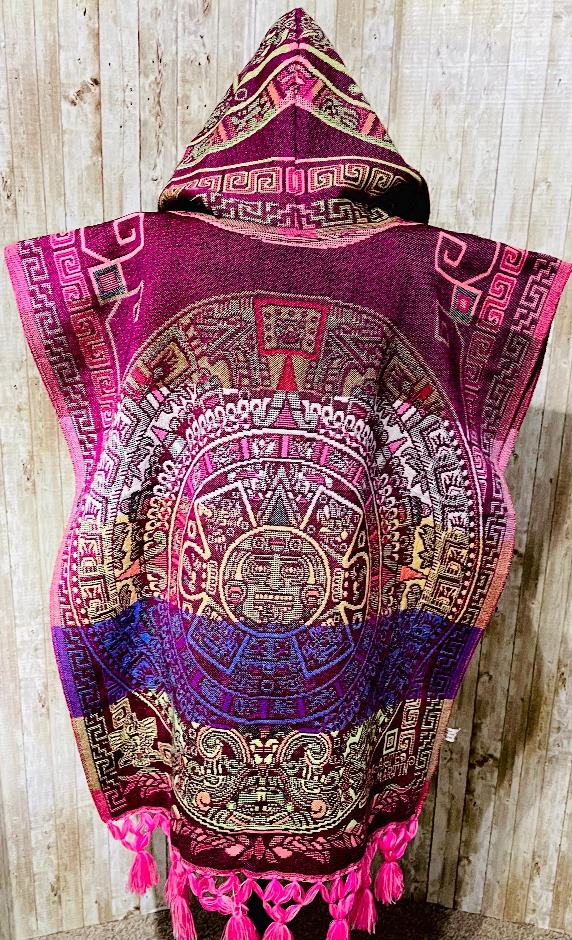 Gavan Poncho Mexicano Calendario Azteca con Gorro Aztec Calendar Mexican Poncho with Hoodie