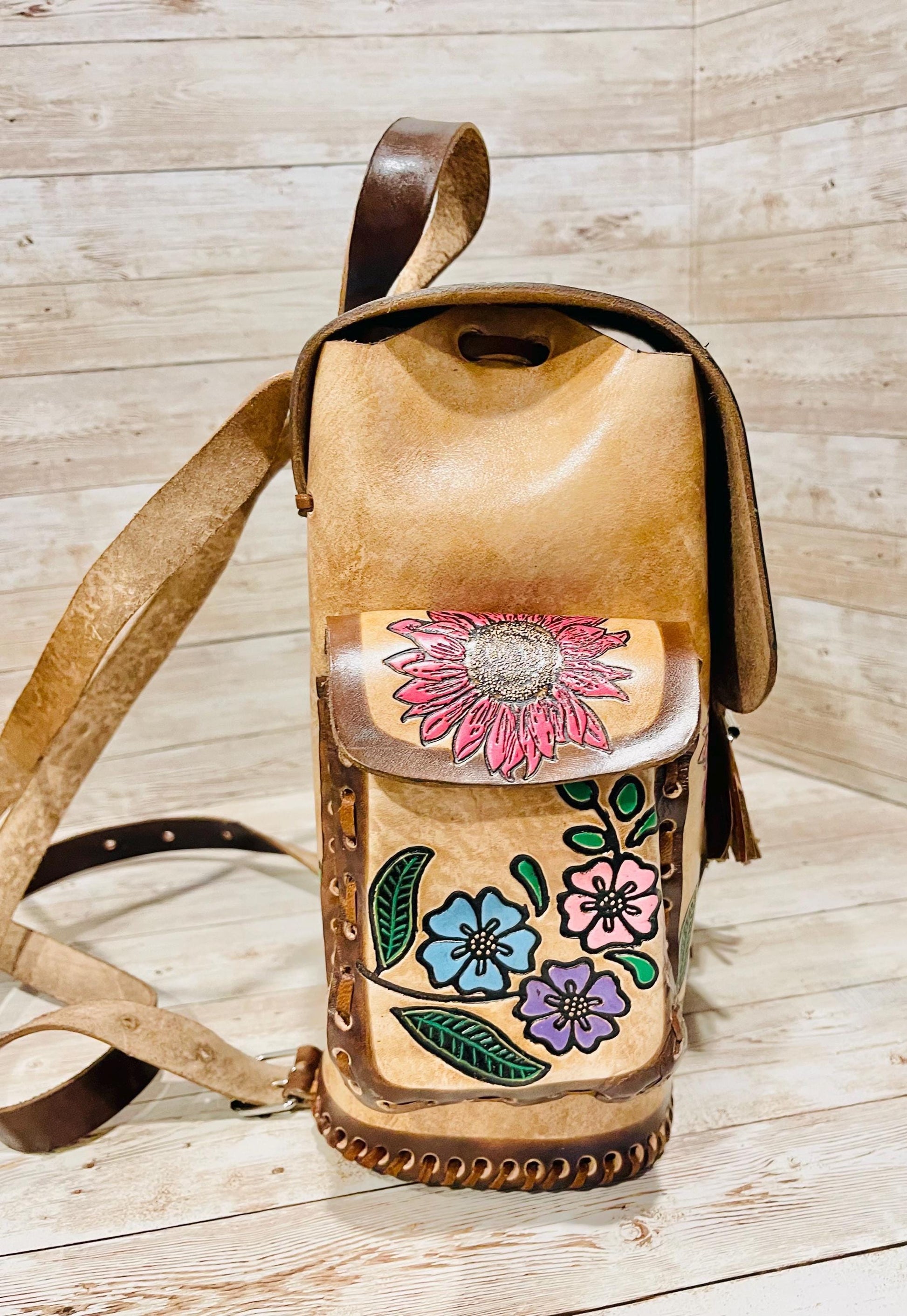 Hand Tooled Mexican Leather Backpack Mochila Mexicana De Piel Cincelada