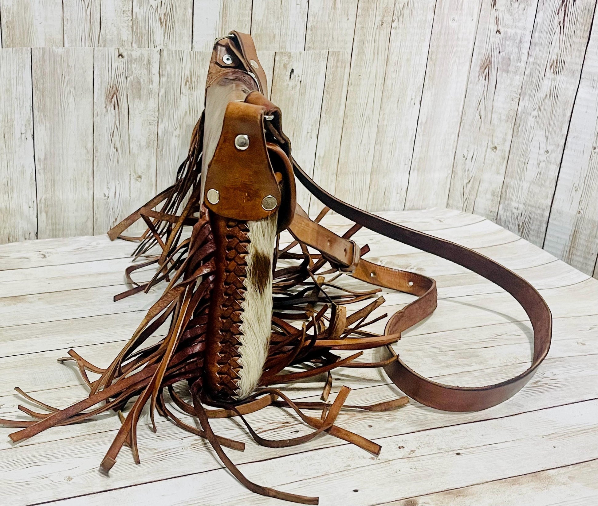 Handcrafted Western Mexican Leather Crossbody Purse with Fringes Bolsa Mexicana de Piel con Flecos
